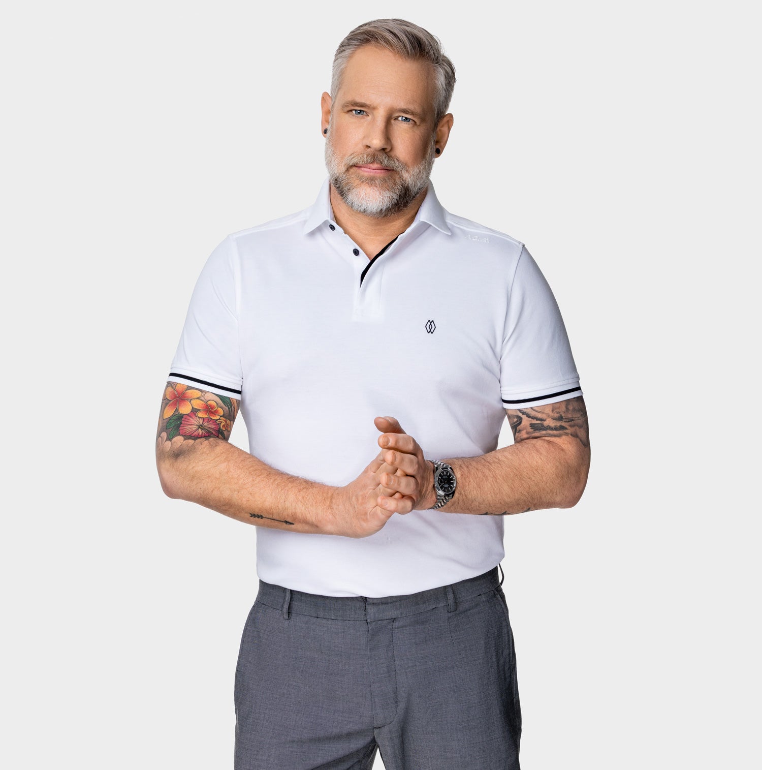 Oliver ist 173cm gross und 75kg schwer. Er ist schlank und trägt die AD.M Produkte gerne etwas lockerer. Er bevorzugt die Grösse M. Yannick ist 180cm gross und 81kg schwer. Er ist athletisch und trägt die AD.M Produkte gerne etwas enger. Er bevorzugt die Grösse M. Peter ist 187cm gross und 90kg schwer. Er ist schlank und trägt die AD.M Produkte gerne etwas enger. Er bevorzugt die Grösse L. Michael ist 185cm gross und 93kg schwer. Er ist etwas stattlicher gebaut und trägt die AD.M Produkte gerne etwas enger. Er bevorzugt die Grösse L. Mirko ist 186cm gross und 97kg schwer. Er hat einen kleinen Bauch und trägt die AD.M Produkte gerne weder zu eng noch zu weit. Er bevorzugt die Grösse XL. Du hast weitere Fragen zur Grössenfindung? Schreibe uns ungeniert eine Mail an info@the-polo.com .