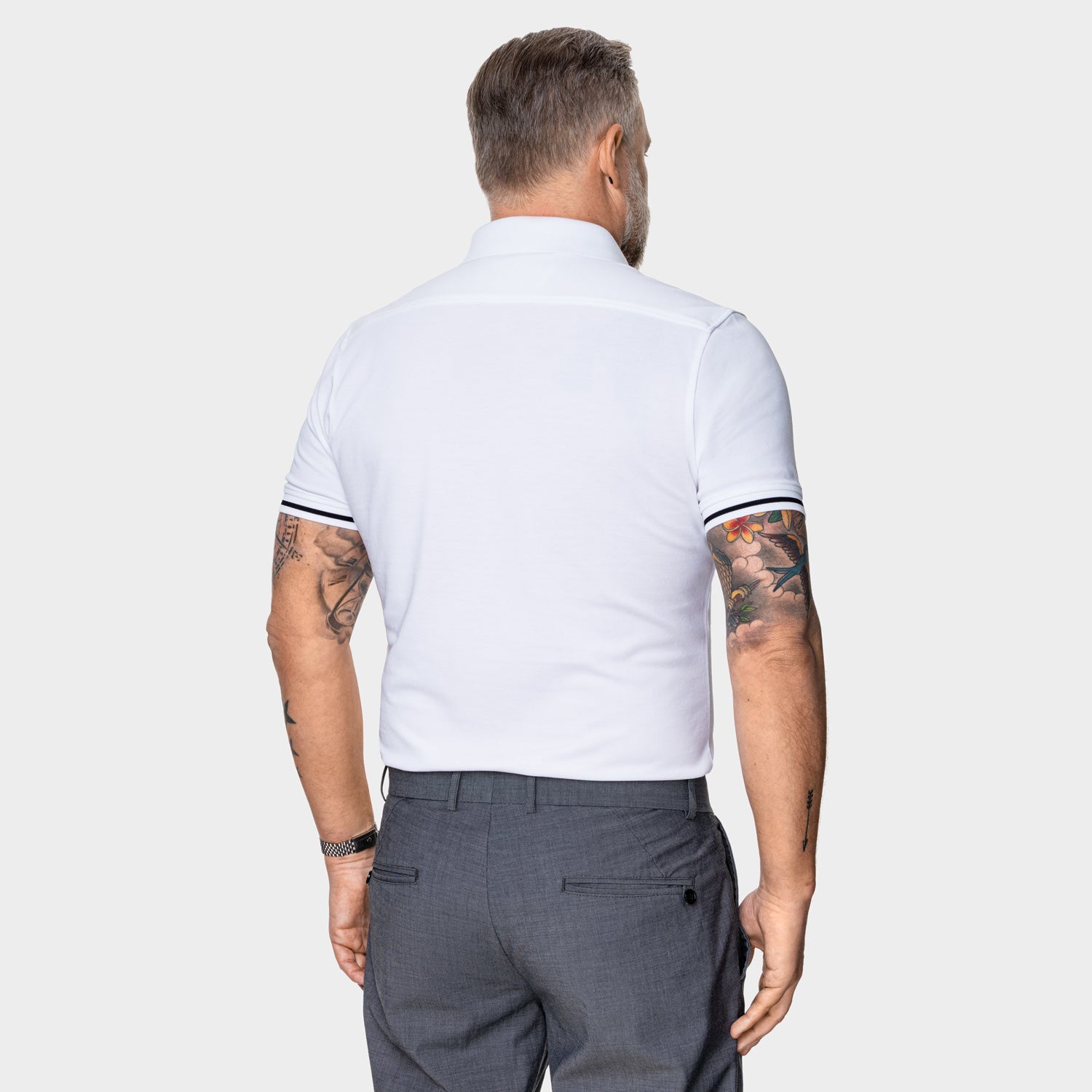 Ebenfalls nach dem Vorbild klassischer Business-Hemden verfügen alle AD.M Poloshirts über einen präzise ausgearbeiteten Schulterschnitt . Diese besondere Schnittführung betont die Schulterpartie, verleiht der Silhouette mehr Ausdruckskraft und sorgt gleichzeitig dafür, dass das Polo am Rücken elegant und faltenfrei fällt.